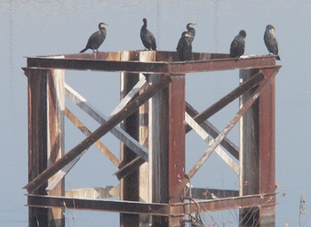 時たま大きく翼を広げまして乾かせていましたけど、この5羽のカワウはそれぞれ別な方向に視線を(^-^)