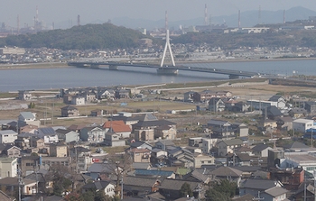 芦田川に眼を向けますと、風がありませんだけに川面が実に穏やかでした。