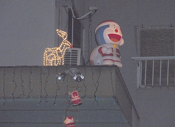 我が家に帰りましてジックリと画像を見てみますと、んっ?!今年は梯子で上がっていますサンタsanの姿がありません(^-^;