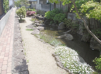 いつものように、静かな美しい道三川の流れに沿ってバラ公園行きとなりました。