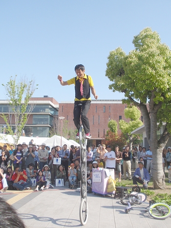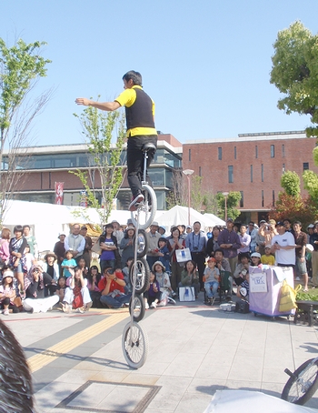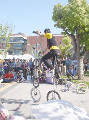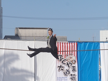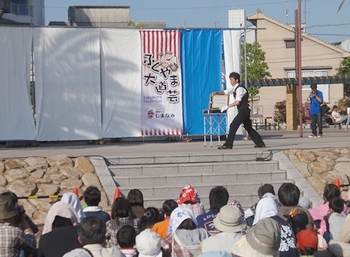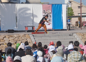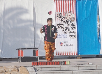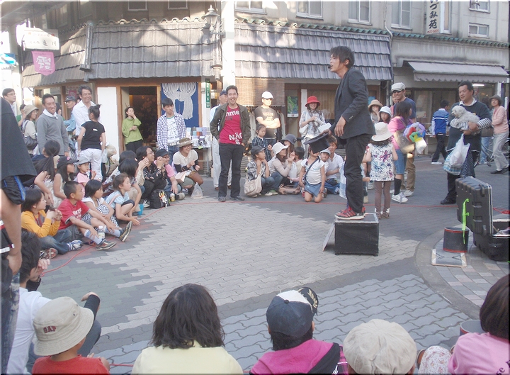 で、立ち止まり輪の中に加わりますと、うん、うん、この方は昨年もこの同じ場所で、同じ内容の大道芸を披露しておられましたねぇ〜