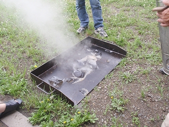 が、缶ビールを冷やしておりましたポリ容器の水を凡て芦田川に捨ててしまいましたから鉄板を冷やす水に事欠く始末(^-^;