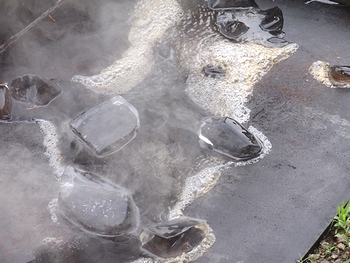 仕方なく僅かに残っておりました氷で冷やす羽目となりましたけど、鉄板に置きました氷が実に気持ちよく溶けてくれます。