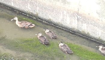 この母ガモを一生懸命に追います7羽の小がも達(^-^)