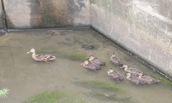 その際に、何気なく用水路を除きますと8羽のカモsan親子が楽しそうに水浴び中(^.-)☆