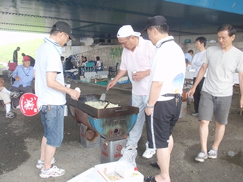 もう食えないぞぉ〜との声もチラホラします中、最後は新風会恒例の焼きそばです(^.-)☆