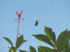 暫しゴンchanの傍らで一服しながら、何を見るともなくフェンス越しのアカメに眼を向けておりますと、一匹のクモsanの存在に気付きました。