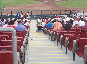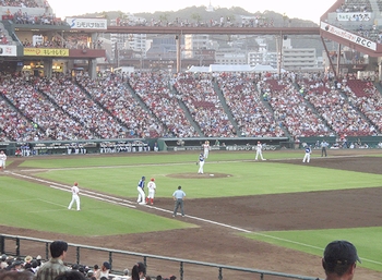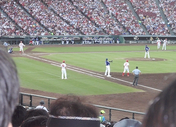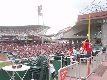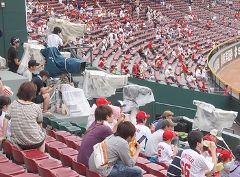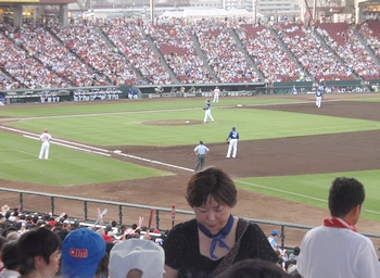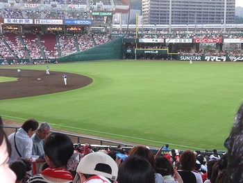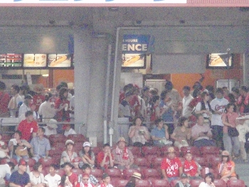 別に理由は無いのですけど、何となく3塁側の内野席の方が落ち着くような気がします。何でなんでしょうねぇ〜