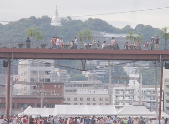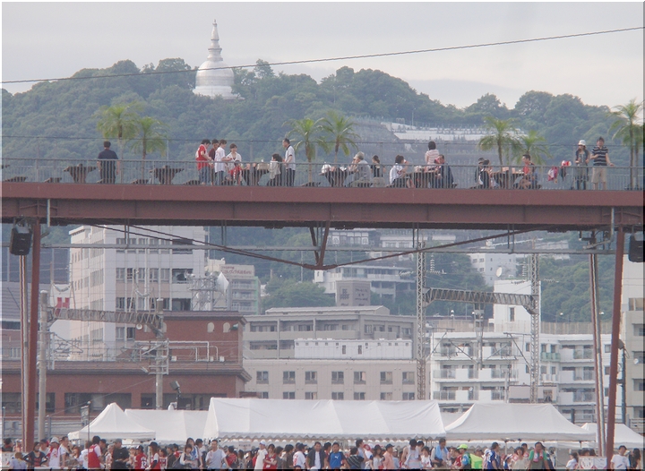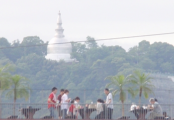 試合開始が近付きましたから、とりあえず所定の席に戻って来まして、球場の北方に眼向けますと仏舎利塔が(^.-)☆