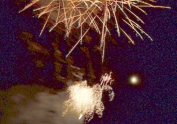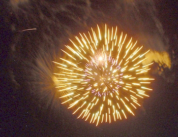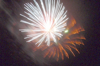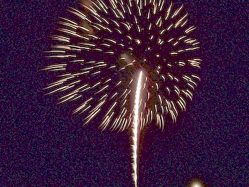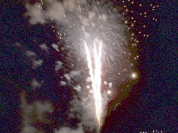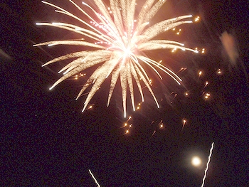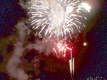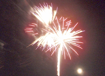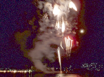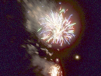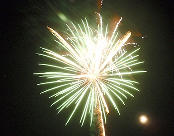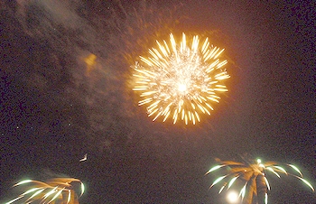 三日月ですから、花火の後方に三日月として写れば最高なんですけど、丸く写ってしまいますから…とにかくジャマでありました(^.-)☆