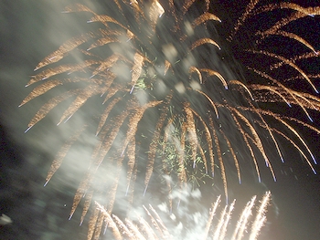が、時たま、花火の燃えかすが、まだ火の付いたまま落ちてきます。