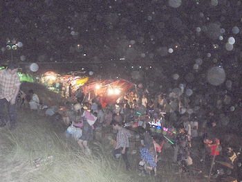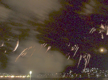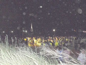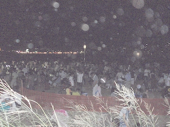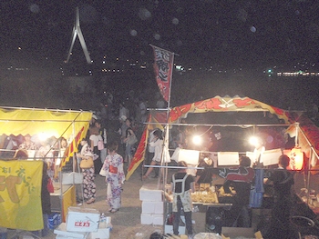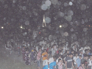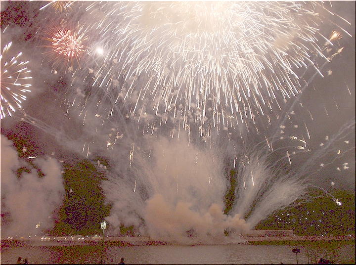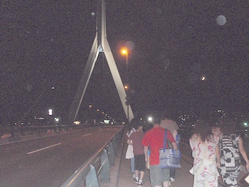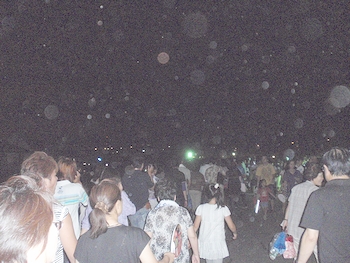 花火の余韻を楽しむようにノンビリと歩いておられる方々の間を縫うように通り過ぎますGONsanですけど、その合間にチョコチョコ立ち止まっては花火後の景観をパチリ(^-^)