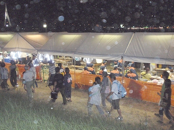 昨年は、時間が来ませんと人も車も芦田川大橋を渡る事は出来ませんから、芦田川大橋東詰は一層大混雑でしたけど、今年は時間前でありましても歩行者のみは通行可。