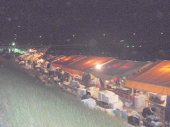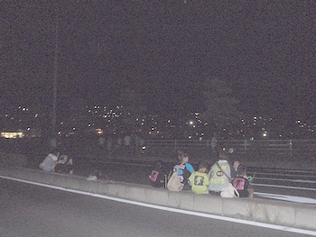 花火が終わりますと、皆さん一斉に帰路につきますけど、河川敷から土手に大勢の方々が上がって来られますから土手は大混雑(^.-)☆