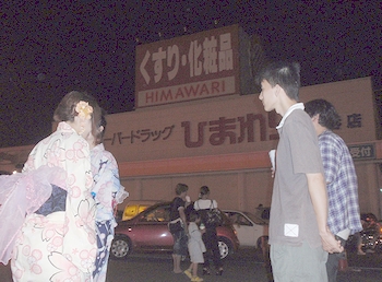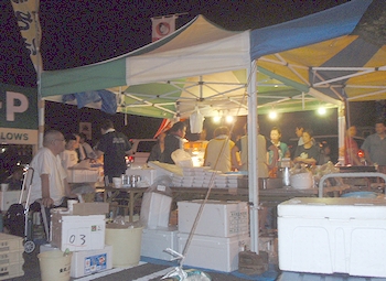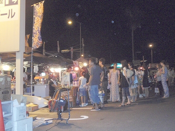 ハローズ水呑店の駐車場まで戻って来ますと、この一角に露店が並んでおりまして、昨年同様にかき氷を求めますGONsan。