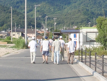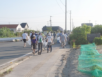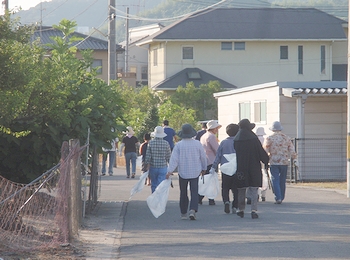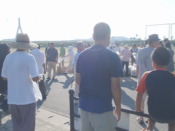 8/16(月)A.M.7:00に町内会集会所に集合し、芦田川土手に向かって数グループに分かれ開始となりました(^_^)v
