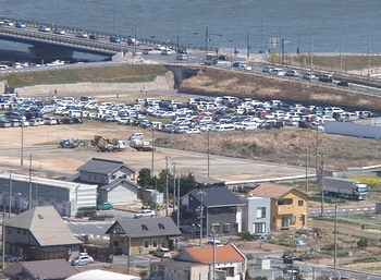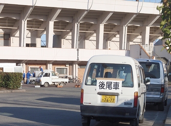 つぃ先刻までのマラソン大会開催で、この多目的広場はその参加者の方々の駐車場にと開放です。