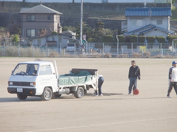 沢山の車が駐車ですから、大会が終わりますと、急いで整地。