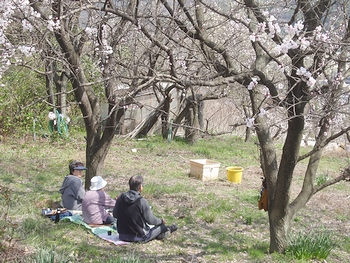 お昼には少しばかり早かったのですけど、既に杏畑ではお弁当を広げておられますご家族もチラホラ(^_^)v