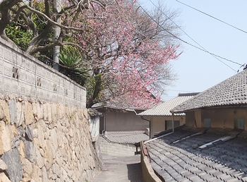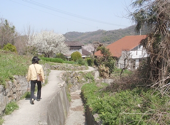 この小径を下りますと県道・福山〜鞆線に出まして、JAバンク田尻支店sanの駐車場へと舞い戻りです(^.-)☆