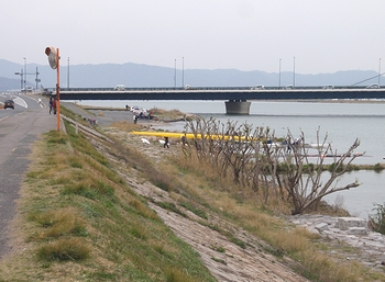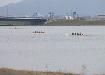 レガッタの練習で芦田川の川面が賑やかでした(^.-)☆