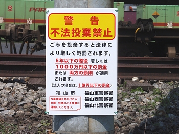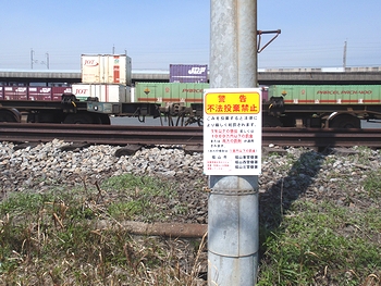 いずれもキレイですからよく分かりませんけど、JR敷地内への表示板設置ですから、きっとJR敷地の斜面部分への不法投棄なのかも分かりませんネ。