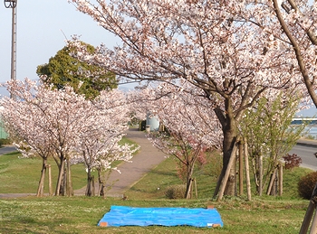 ウォーキングロードには、既に数グループの方がビニールシートを敷き場所を確保。