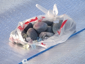 シートが風で飛ばされないよう思い思いに石ころを置かれたりしておられましたが…