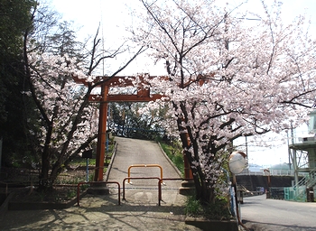 ほぼ満開状態のサクラを楽しみながら、ノンビリと坂道を境内へ。