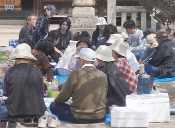 境内では、平日にも拘わらず14〜5名の団体sanがお弁当を広げて花見の真っ最中(^_^)v