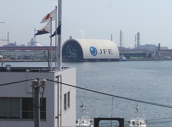 天當神社の境内からJFE方向に眼を向けますと、福山港湾合同庁舎の職位の方なんでしょうか…エスキーテニスを楽しんでおられましたネ(^_^)v