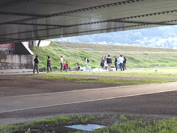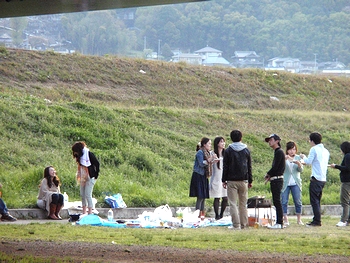 チョッと前までの冷たい気温ですと、こんな時間帯ともなりますとサッと運動公園・河川敷周辺からは人影も消え去ってしまいますけど、温かくて陽が長くなりますと、いつまでも人影は消えませんようですねぇ(^.-)☆
