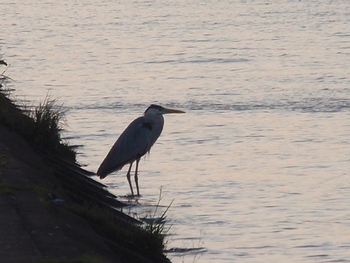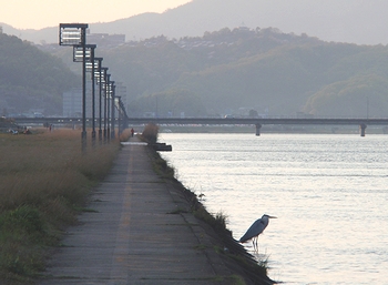 河川敷の護岸では、一羽のシラサギがジッとたたずんでおりました。