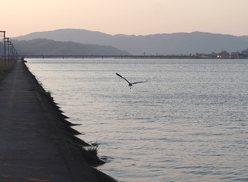 夕闇が迫って来ています中で撮りました運動公園・芦田川河川敷の景観です(^.-)☆