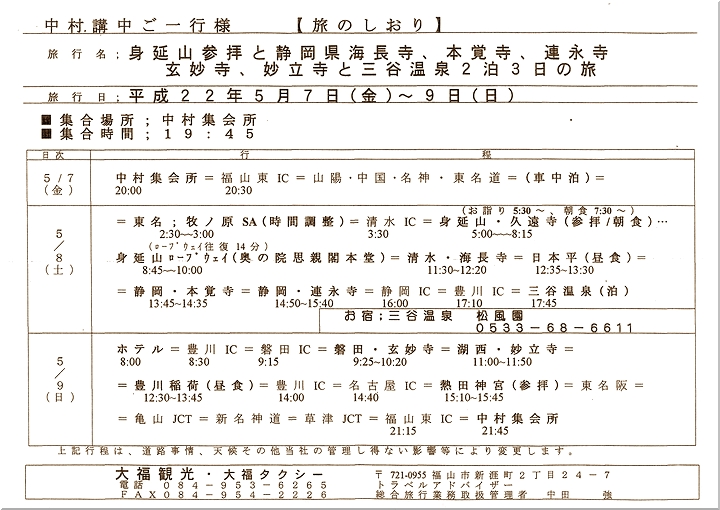 GW明けの5/7(金)〜5/9(日)の3日間は、中村講中の皆様と静岡方面のお寺参りでありました(^.-)☆