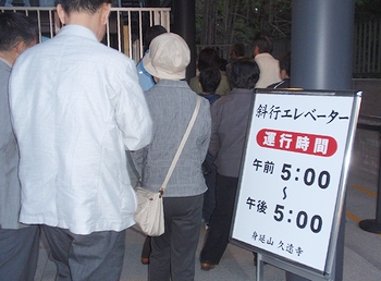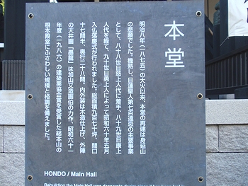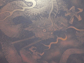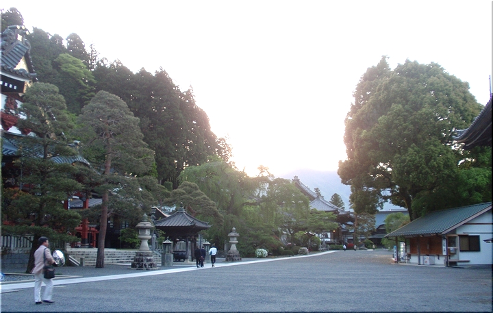 『6時からお勤め。お経は、鳴り物が入った、非常に早いお経で、山伏のような雰囲気で迫力のある、お勤めだった。最後に、一番偉いお坊さんのお話があったが、ここの創建は、昔、妙齢の娘が熱心に通ってきていたが、不思議に思い、問いただしてみると、龍女とのこと。法華経を守る龍女で、これからも天上に戻り、法華経を守護すると言って消えたそうだ。』