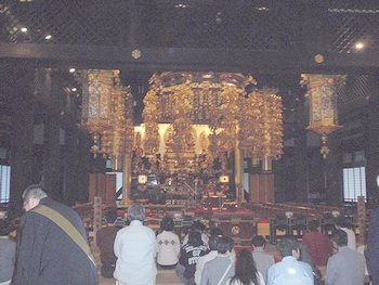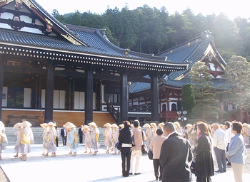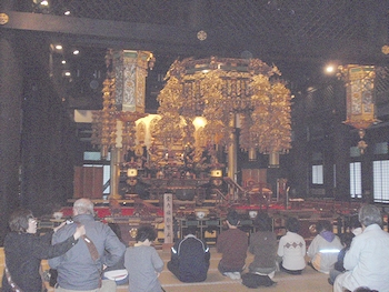 身延山久遠寺本堂での朝のお勤めは、冬場が6:00で夏場は5:30。