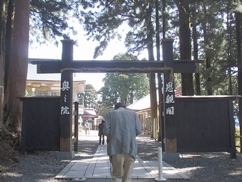 参道両脇に聳える老杉は、大聖人が両親追善のため自ら植樹したとされています。