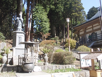 参道石段中程の両側には、日蓮大聖人が自らお手植えになられた4本の杉古木があり、石段の先、仁王門には、鎌倉時代を代表する仏師・運慶の作と伝えられる「密迹(みっしゃく)金剛」・「那羅延(ならえん)金剛」の二体の仁王像が境内を護っています。