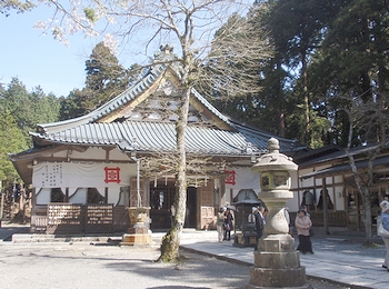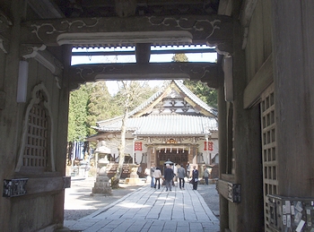 三門より徒歩で五十丁(5.5km)ロープウェイを利用しますと、七分で登詣できます。