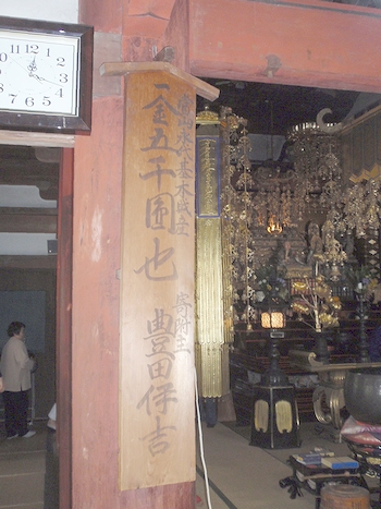 本堂内には、大正6年に豊田佐吉翁が寄進されました「五千円」の目録。