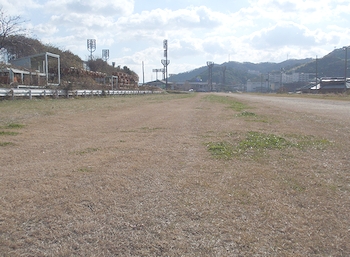 ハローズ駐車場側から運動公園内に入りまして、福山市民球場へと続きます芝生・雑草地帯には車の駐車もなく広々としたものですから、走り廻りますのかと思いましたら、10bばかり疾走後、突然急ブレーキ。