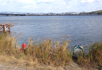 土手上のGONsan・ゴンchanと並行して芦田川大橋よりの川上へ。