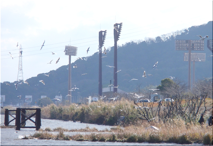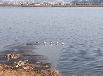 気温はさほど暖かくはありませんでしたけど、天気が良いので河面には6羽のカモメsan達がノンビリと日向ぼっこをしておりました。