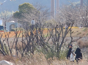 釣り人にお別れを告げ、芦田川大橋方向に進んでいますと、今度はヌートリアがよく出没します場所辺りにご家族連れが(^-^)
