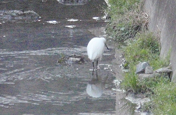 護岸の石の上に立ち、ジッと中洲に眼を向けておられます。