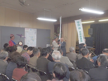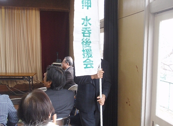 そんなに広くもありません講堂に、大勢の支援者の皆様が集合で熱気に包まれまして、少々暑い感じがしない事も…