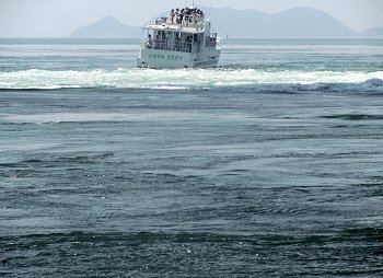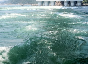 この早い潮流と、海峡両岸に近い穏やかな流れの境目において、渦が発生する。大潮の際には渦の直径は最大で20mにも及ぶ。…と、こんな“鳴門の渦潮”でありますが、残念ながらGONsanはまだ一度も出かけて見た事はありません。