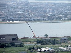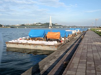 まずはご先祖様にお経を唱え、そして眼下に眼をむけますと、うん、うん、芦田川では8/15の花火大会の準備に追われておりました(^.-)☆毎回の事ですけど、花火大会の前日に花火師の皆様が準備に大わらわ(^-^)