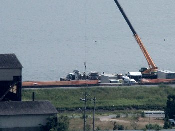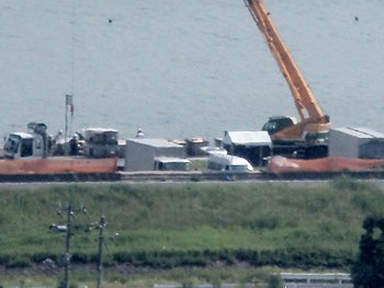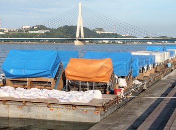 準備は凡て完了で、台船周辺にはどなたもおられませんで、クレーン車も退散済みでありました。ただ、ガードマンsanがお一人待機。